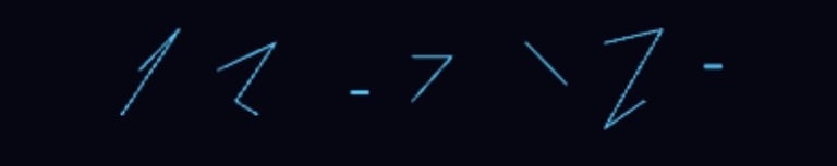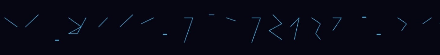 Lower IDs produce simpler shapes: "the" (ID 3) is a single dash. "water" (ID 383) is a three-point stroke. "constellation" (ID 24891) is a five-point form.